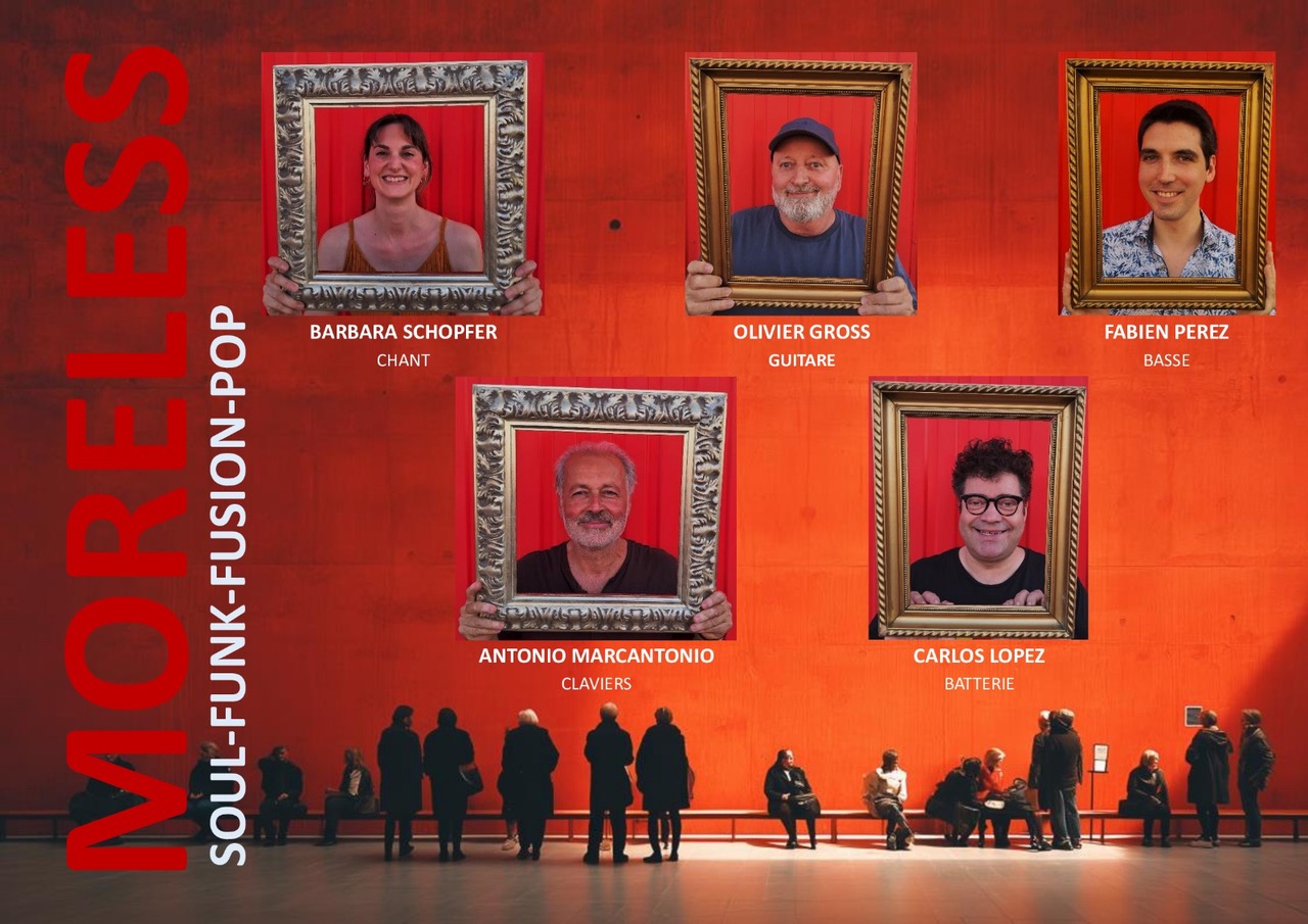 Moreless ist eine Gruppe von fünf befreundeten Musikern, die die Vorliebe für gute Musik vereint. Mit einem Repertoire mit sehr unterschiedlichen Einflüssen laden sie Sie ein, einen geselligen Moment mit alten Klassikern zu verbringen, die in einem intimen Rahmen oder im Freien neu interpretiert werden.